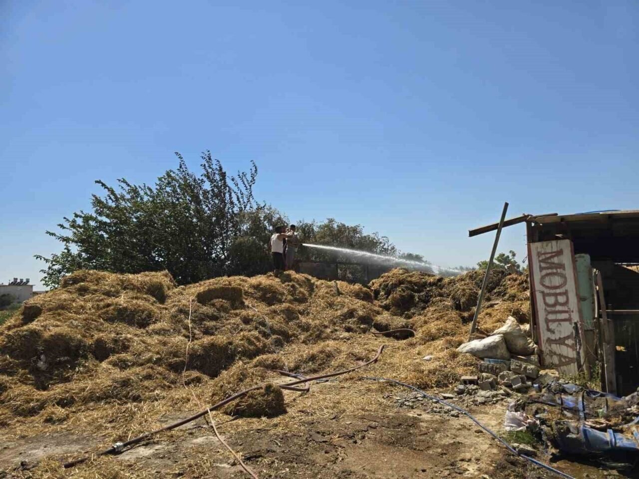 Ekiplerin müdahalesi sonucunda söndürülen yangında can kaybı yaşanmazken, hayvancılıkla geçimini sağlayan Mustafa Ali Aydın’a ait samanlıkta bulunan bin 500 dolayında saman balyası yandı.