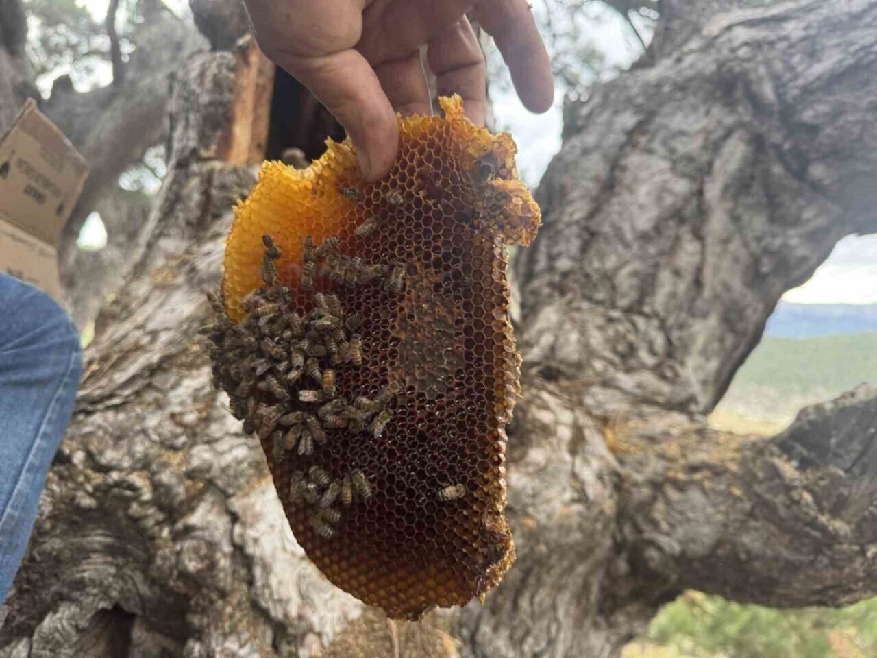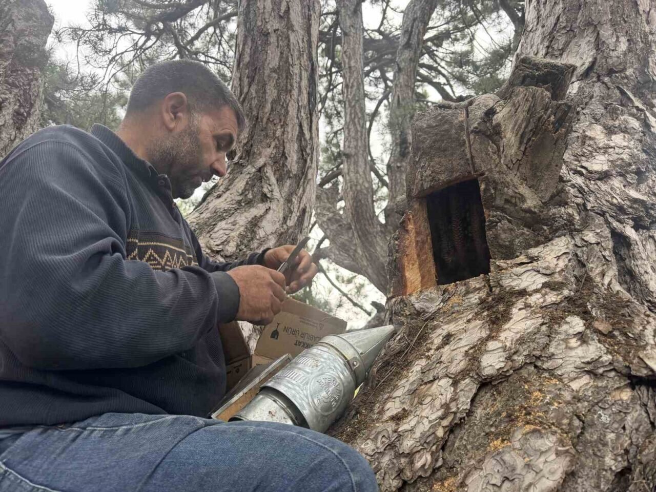 Eşi ile birlikte günlerce arıların izini sürdüğünü anlatan Kara, “Bunları günlerce arıyorum. Bulduğum doğal kovanları sadece Ağustos ayından sonra hasat ediyoruz. Bulduğum arıların kimisinde bal çıkıyor, kimisinde çıkmıyor. “Bu dağların verdiği Cenab-ı Allah’ın verdiği doğal baldır. Ağustos’un 15’inden sonra keseriz biz bunu. Havalar iyi giderse kasım ortasına kadar devam eder.” dedi.