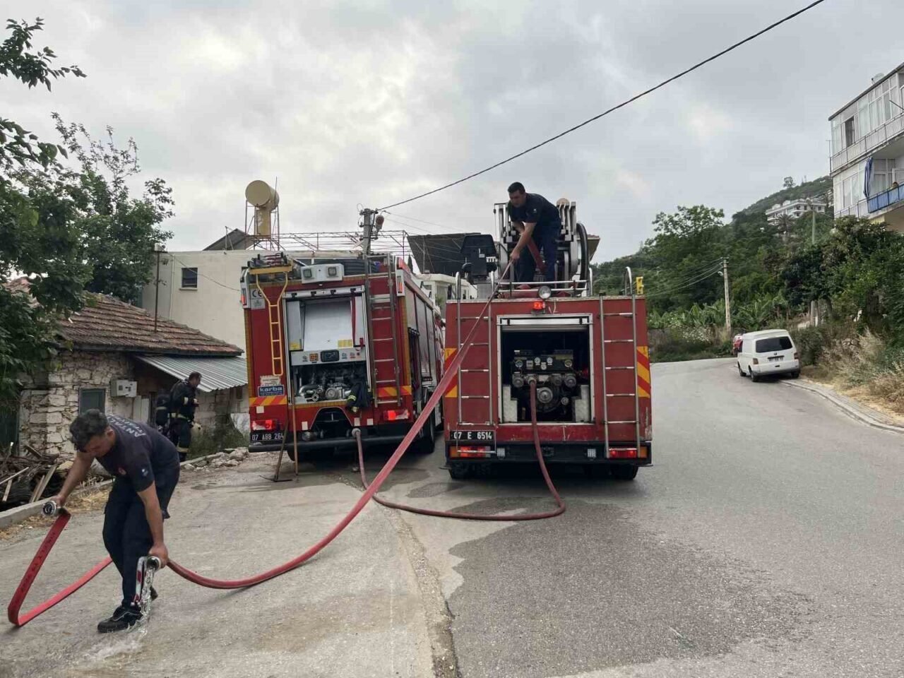 Durumu fark eden çevredeki vatandaşlar, 112 Acil Çağrı Merkezi’ne haber verdi. İhbar üzerine olay yerine itfaiye ve polis ekipleri sevk edildi. Antalya Büyükşehir Belediyesi Alanya İtfaiye Amirliği’ne bağlı ekipler yangına kısa sürede müdahale ederek alevleri kontrol altına aldı.