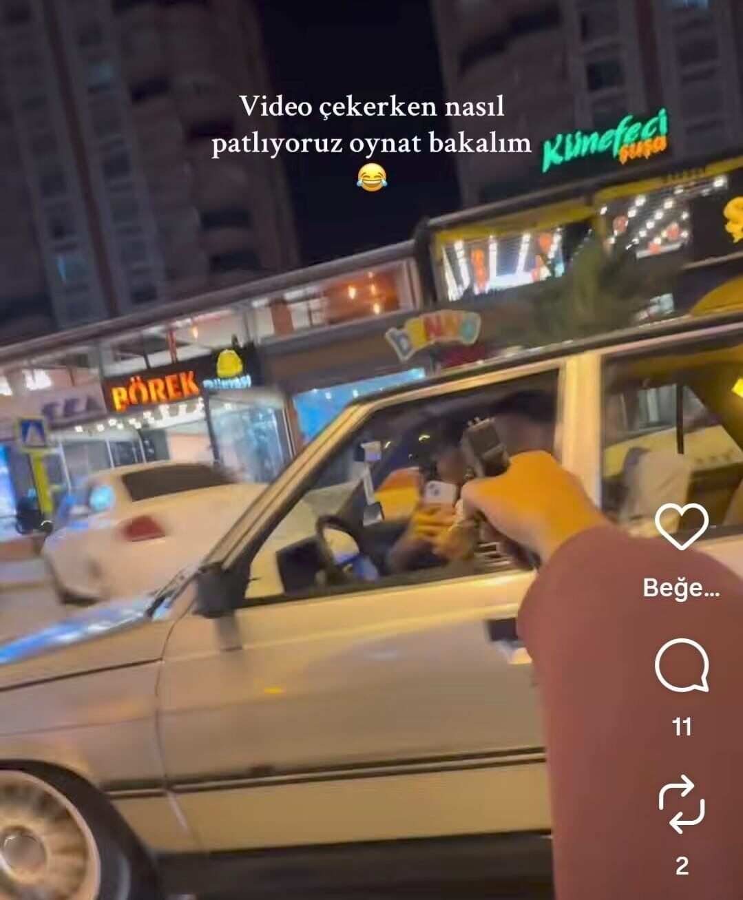 Olay, Kozan ilçesi Göç Yolu’nda meydana geldi. Edinilen bilgiye göre, sosyal medyada takipçi artırmak isteyen “Adana’da sıradan bir gün” adıyla video çeken iki genç, trafikte seyir halindeyken karşı araçta bulunan arkadaşını oyuncak silahla korkutmak istedi. Gençlerin bu anları kayda aldığı sırada, kırmızı ışıkta durdukları noktada Kozan İlçe Emniyet Müdürlüğü Asayiş Şube ekipleri olaya müdahale etti.