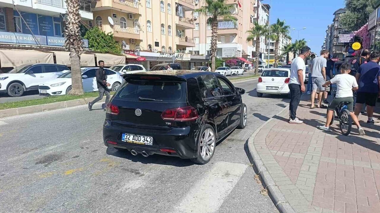 Antalya’nın Manavgat ilçesinde 2 otomobilin çarpışması sonucu meydana gelen kazada kadın sürücü hafif yaralandı. Kazayı yara almadan atlatan küçük kız ise yaralanan annesinden ayrılmak istemeyince uzun süre ağladı.
