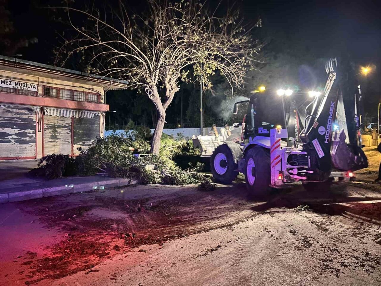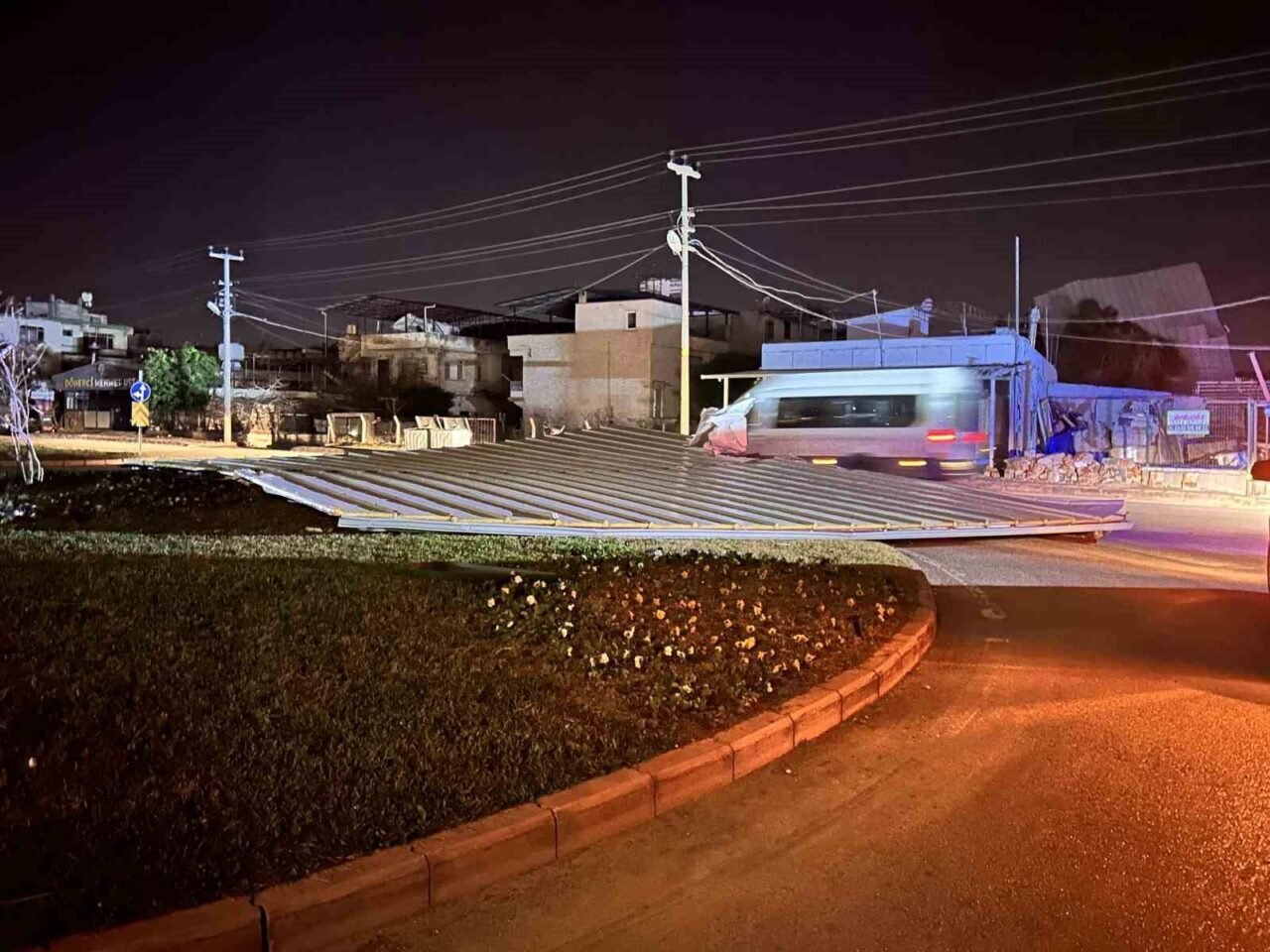 Hatay’da gece saatlerinde etkili olan fırtına ağaçları yerinden söktü, çatları uçurdu.