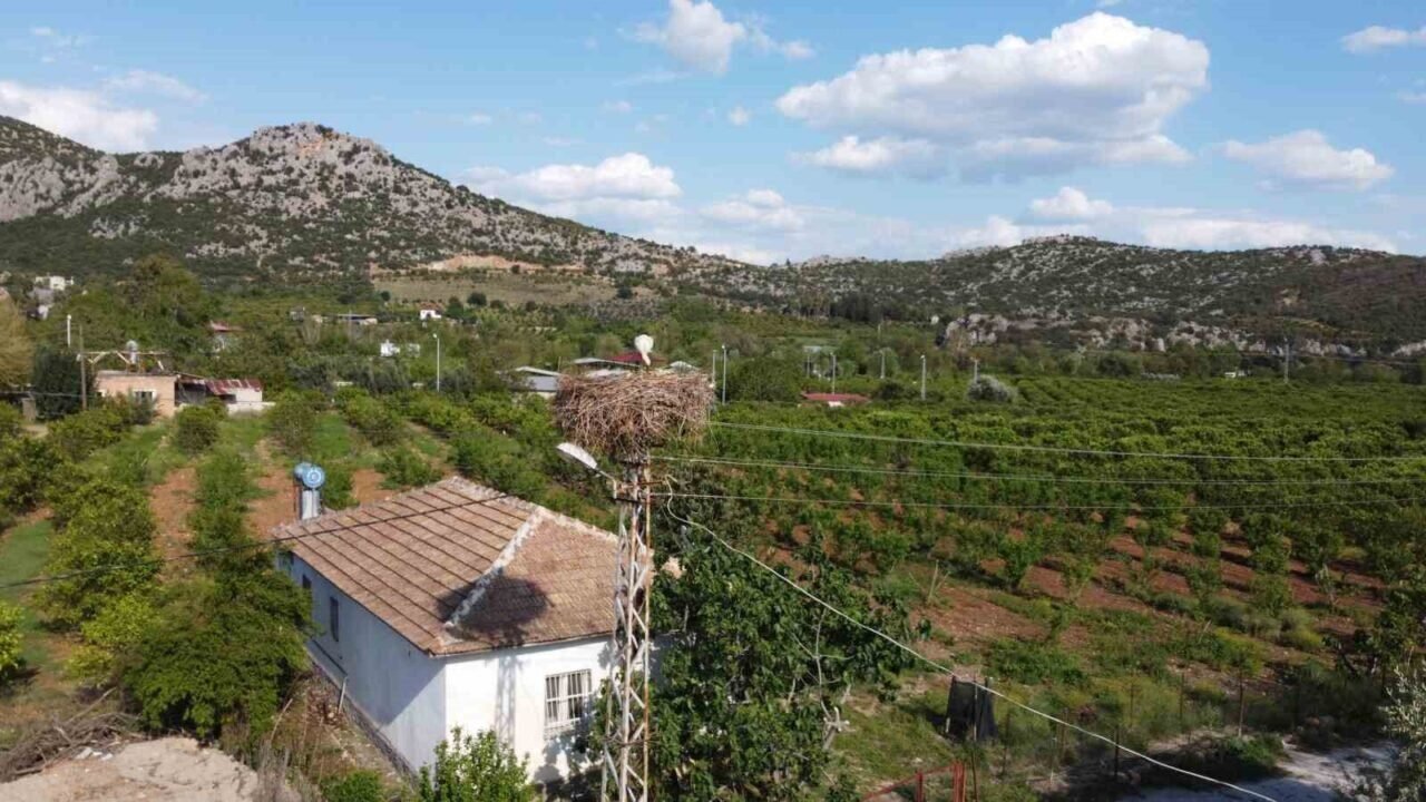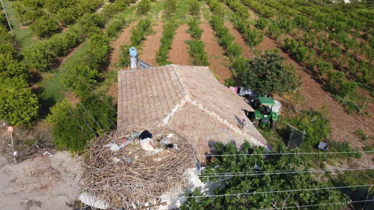 Adana’nın Kozan ilçesine 5 yıldır gelen leyleklerin, yuvaya taşıdığı çöpler