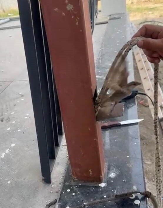 Mahsur kalan kuş demir direk kesilerek kurtarıldı