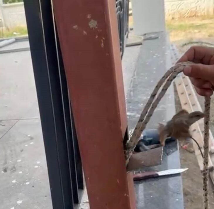 Olay, Osmaniye’nin Çardak köyünde meydana geldi. İnşaat halindeki evde çalışan ustalar evin gölgeliğindeki demir direğin içinden kuş sesi geldiğini fark etti. Kuşun yerini tespit eden ustalar yanlarında bulunan spiral makinesiyle demir direği kesip pencere şeklinde bir delik açtı. Mahsur kalan serçe açılan pencereden uçarak uzaklaştı.