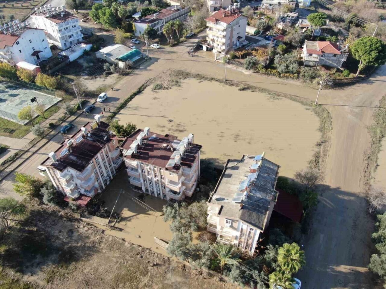 Antalya’nın turuncu kodla uyarılan ilçelerinden Manavgat’ta dün yoğun yağış nedeniyle çok kısa bir süre içerisinde metrekareye 106 kilogramlık yağış düştü. Hayatın olumsuz etkilendiği ilçede 500 civarı ihbar alınırken iş yeri ve konutları su bastı. Yağış, tarihi Side Antik Kenti’ni de olumsuz etkiledi. Tyche Tapınağı başta olmak üzere antik kentteki tarihi yapıların bulunduğu bölüm, yağmur sularıyla doldu. Side Mahallesi 1586 sokakta sular altında kalan onlarca evde gece başlayan su tahliye işlemleri devam ederken evlerin içerisinde bulunan eşyalar dışarı çıkartılarak evlerin temizlenmesi işlemi bütün hızıyla devam ediyor. Antalya Büyükşehir belediyesi, ASAT, Manavgat Belediyesi, JAK, Komando birliği, AFAD ve gönüllüler yaraların bir an önce sarılması için çalışırken, Manavgat Kaymakamlığı Sosyal Yardımlaşma ve Dayanışma Vakfı görevlileri de evleri tek tek gezerek hasar tespiti yapıyor.
