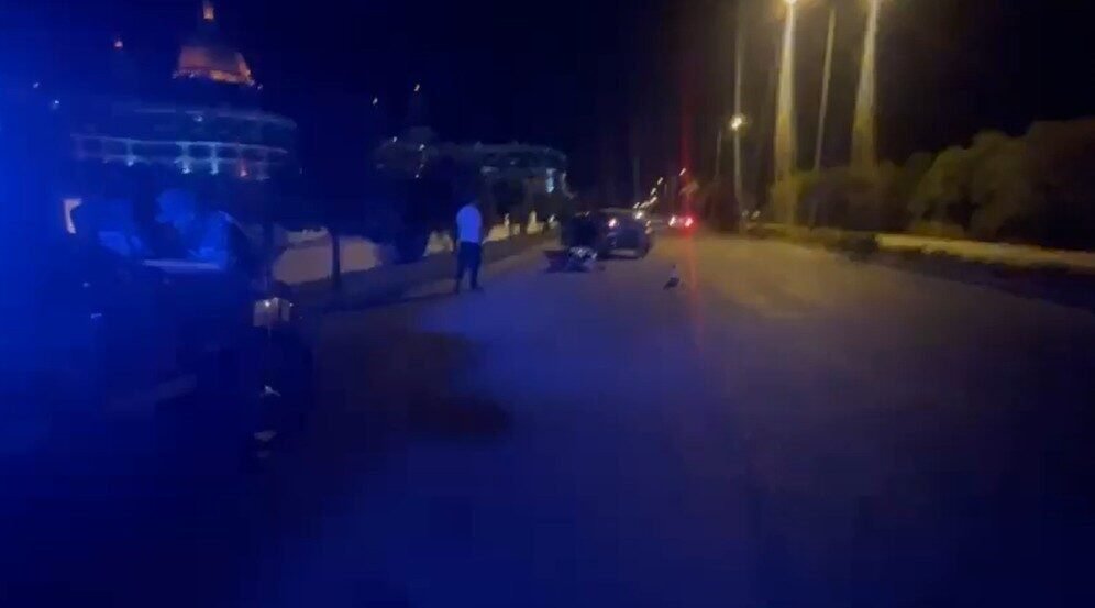 Antalya’nın Manavgat ilçesinde, otel önünde ’U’ dönüşü yapan otomobile motosikletin