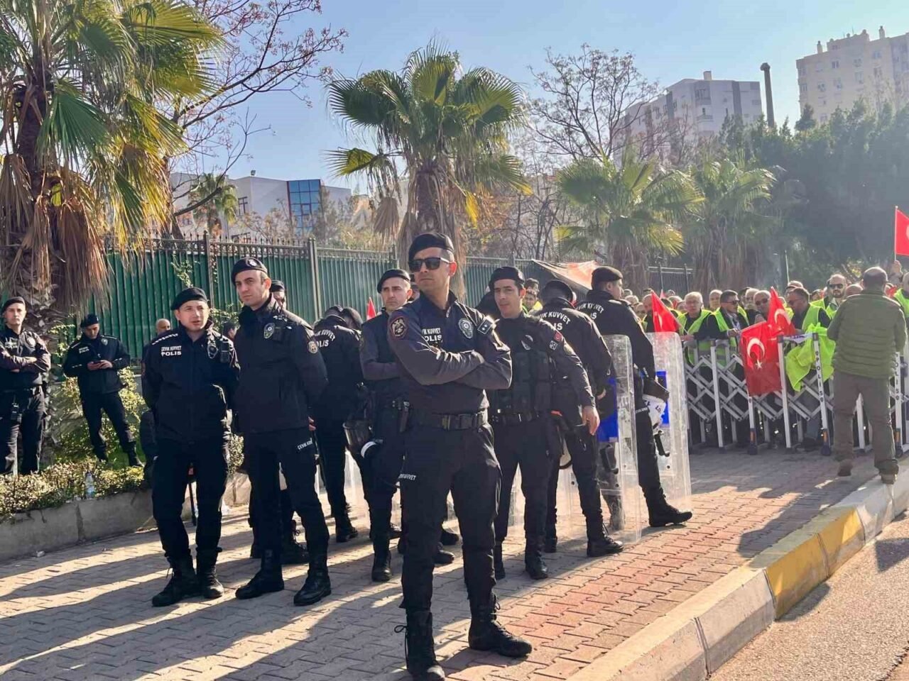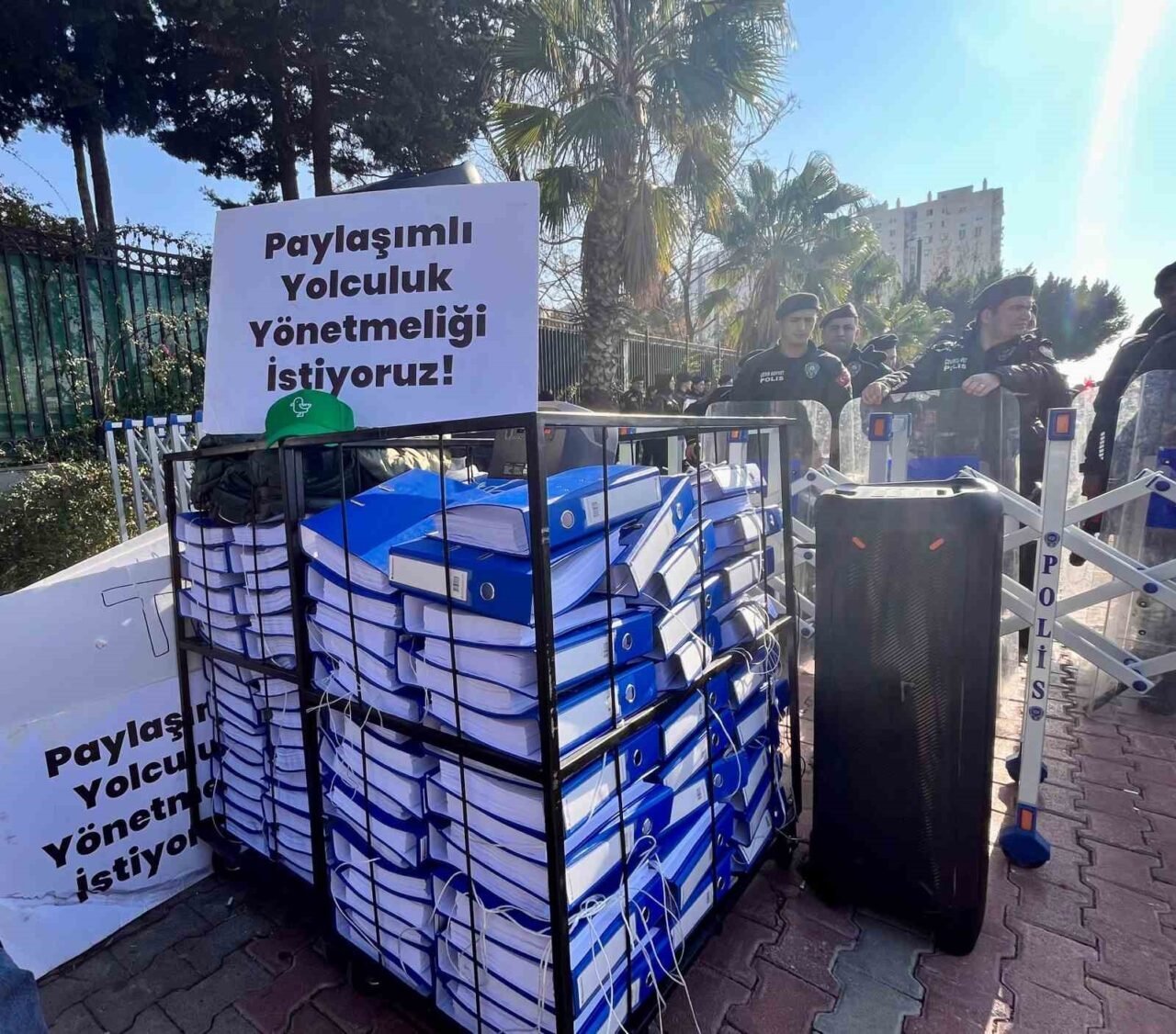 Duruşma, Antalya Şoförler ve Otomobilciler Odası Başkanı Mehmet Ali Alkan, Martı TAG kurucusu ve CEO’su Oğuz Alper Öktem, şirket çalışanları ve Antalyalı taksicilerin yoğun katılımıyla gerçekleşti. Mahkeme öncesinde her iki tarafın destekçileri, sloganlar ve pankartlarla adliye önünde haklarını savundu. Çok sayıda güvenlik gücünün görev yaptığı alanda, çelik bariyerler ve TOMA gibi önlemler sayesinde herhangi bir arbede yaşanmadı.