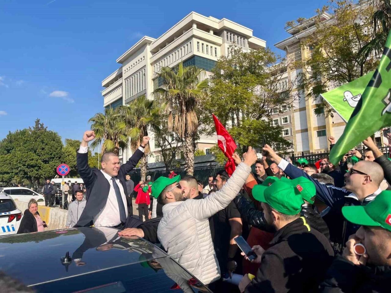Dava çıkışında taraftarları tarafından sloganlarla uğurlanan Oğuz Alper Öktem, aracına binmeden önce adliye önündeki taksi çağırma butonuna basarak “Alo, iki çay gönderin” ifadelerini kullandı. Bu jest, Martı TAG destekçileri tarafından sevinçle karşılandı.