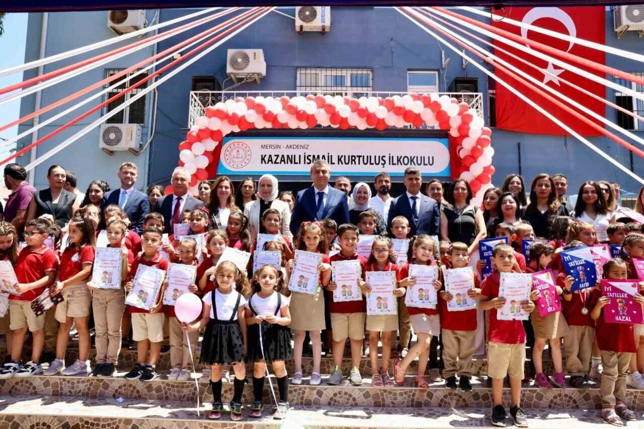 Kent genelinde düzenlenen karne törenlerinden biri de Akdeniz ilçesindeki Kazanlı İsmail Kurtuluş İlkokulu’nda gerçekleştirildi. Törende öğrenciler tarafından halk oyunları gösterisi sunuldu. Programa Mersin Valisi Atilla Toros, İl Milli Eğitim Müdürü Fazilet Durmuş, Akdeniz Kaymakamı ve Akdeniz Belediye Başkan Vekili Zeyit Şener, öğretmenler ve veliler katıldı.