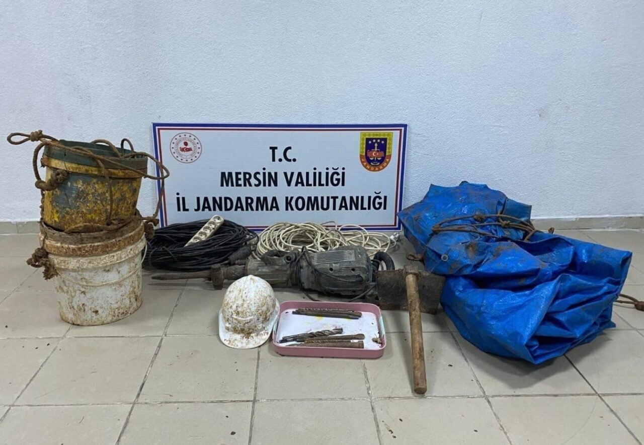 Edinilen bilgiye göre, İl Jandarma Komutanlığı ekipleri, Toroslar ve Çamlıyayla ilçelerinde tarihi eser bulmak amacıyla kaçak kazı yapan şüphelilere yönelik çalışma başlattı. Jandarma ekipleri tarafından gerçekleştirilen operasyonda, 5 şüpheli kaçak kazı yaparken suçüstü yakalanarak gözaltına alındı. Şahıslarla birlikte 1 dedektör, 1 hilti, 50 metre uzatma kablosu ile kazı çalışmalarında kullanılan çok sayıda malzeme ele geçirildi.