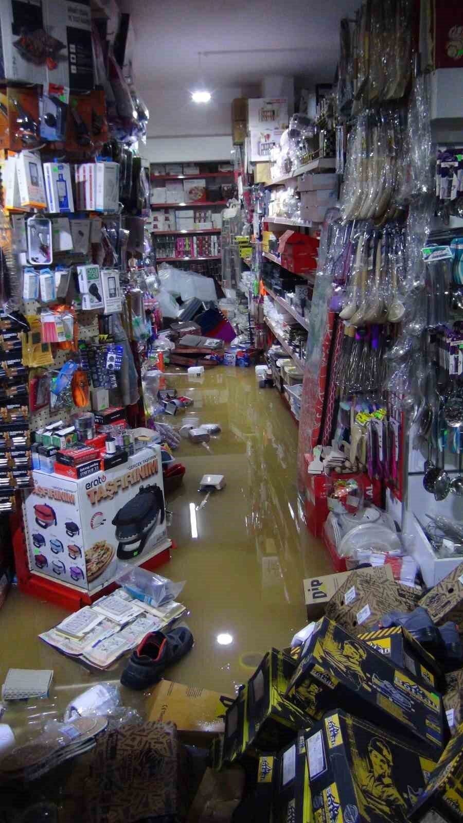 Dükkanını bir anda su bastığını belirten Ahmet Akkurt, “Biranda sel arka taraftan gelip dükkanımın içini doldurdu. 1.5 metre yükseklikteki sel işyerime zarar verdi” dedi.