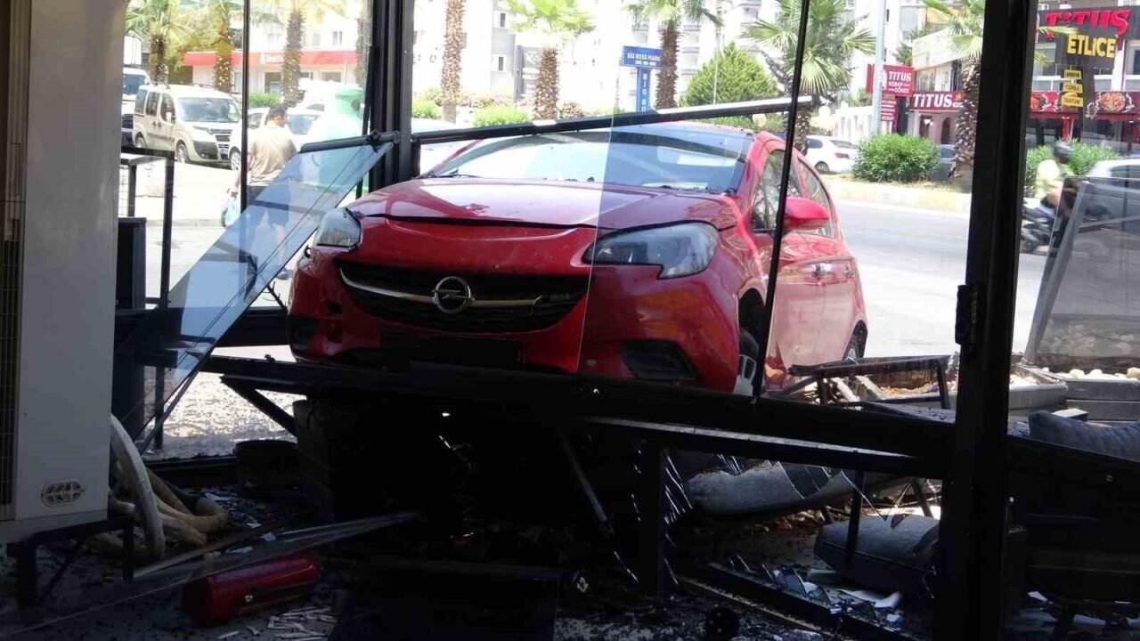 Mersin’de meydana gelen iki ayrı kazada, sürücülerin direksiyon hakimiyetini kaybettiği araçlar iş yerlerine çarptı. Kazalardan biri güvenlik kamerasına saniye saniye yansıdı.