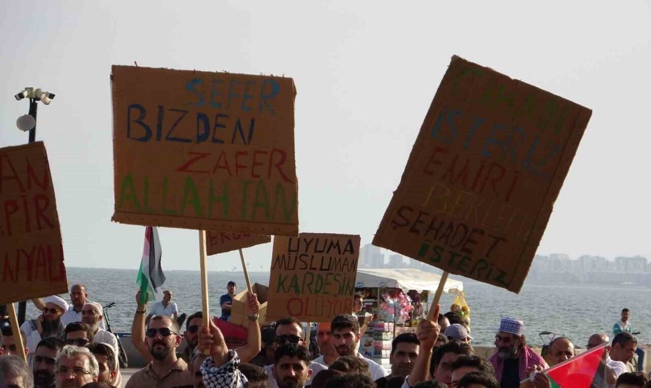 Mersin’de İsrail’in Gazze’ye yönelik saldırılarını protesto etmek ve Gazze’de yaşanan insanlık dramına dikkat çekmek amacıyla ’Büyük Gazze Mitingi’ düzenlendi.
