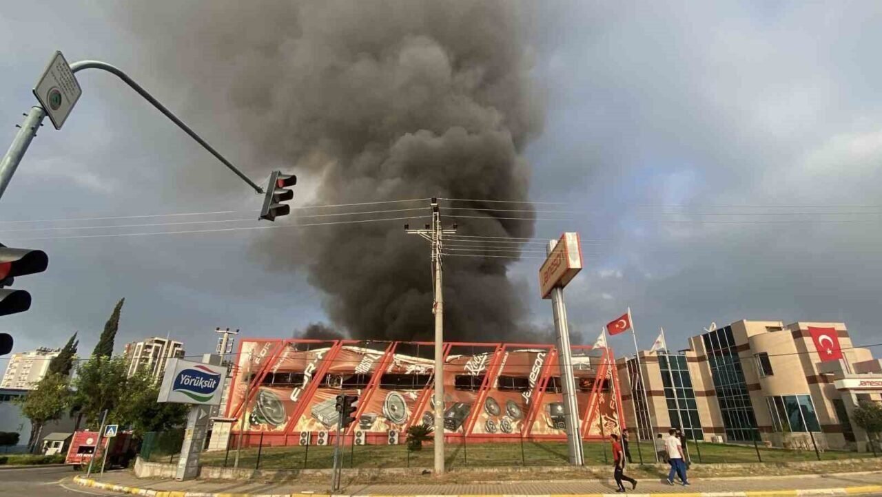 Mersin’de elektronik eşya üreten fabrikada yangın… Alevler metrelerce yükseldi