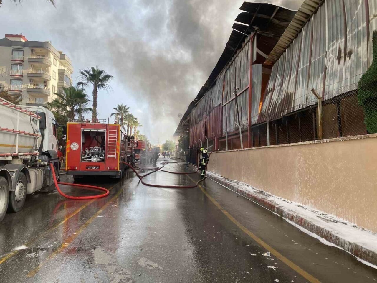 Mersin’de çeşitli elektronik ürünler üreten bir fabrika alev alev yanmaya başladı. Bölgeye gönderilen itfaiye ve TOMA ekipleri yangını kontrol altına almak için müdahale ediyor.