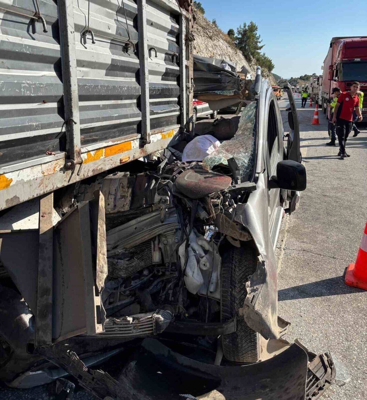 Hafif ticari aracın tırın altına girdiği kaza sonrası yoldaki trafik bir süre aksadı. Kazada hayatını kaybedenlerin kimlik tespit çalışmalarının sürdüğü öğrenildi.