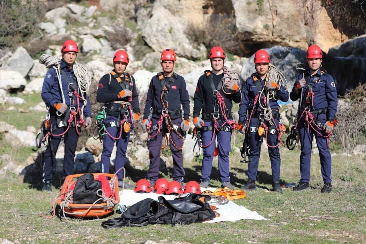 Mersin Büyükşehir Belediyesi İtfaiye Dairesi Başkanlığına bağlı ekipler, kayalık alanda eğitim yaptı. Yüksek irtifada ip tekniği ile 6 kişilik Dağcı Arama Kurtarma ekibi, ortalama 50 metre yükseklikteki kaya üzerinden istasyon kurarak, güvenli şekilde iniş-çıkış, ip değiştirme, yaralı tahliyesi ve hayvan kurtarma eğitimi gerçekleştirdi.