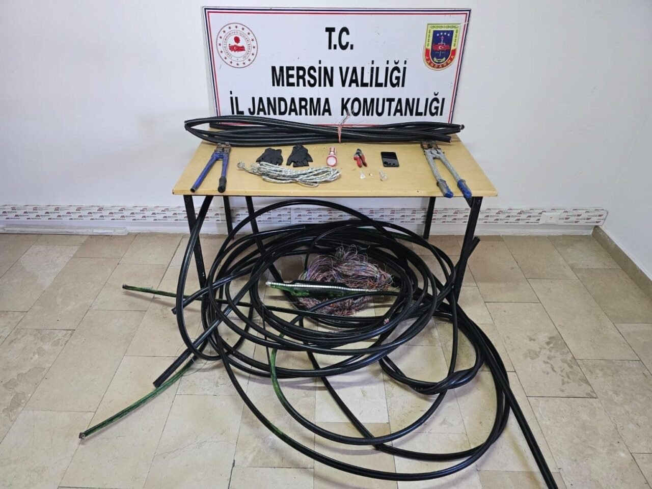 Alınan bilgiye göre, Silifke’de telefon kablolarının kesildiği ihbarı üzerine jandarma ekipleri, şüphelileri yakalamak amacıyla harekete geçti. Telefon kablolarının kesildiği bölgeyi çembere alan ekipler, yaptıkları aramada 2 şüpheliyi telefon kablolarını keserken suçüstü yakalayarak gözaltına aldı. Şahısların üzerinde ve aracında yapılan aramada 2 demir kesme makası, 200 metre kesilmiş telefon kablosu ve 1 uyuşturucu kullanma aparatı ele geçirdi.