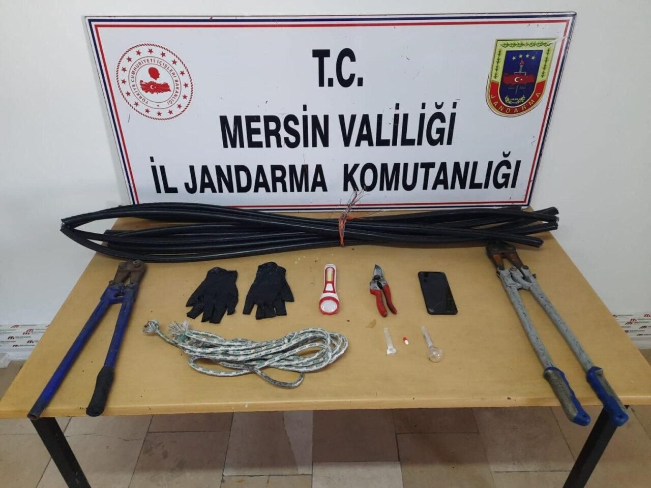 Mersin’in Silifke ilçesinde kablo hırsızlığı yaparken jandarma ekiplerine suçüstü yakalanan 2 kişi tutuklandı.