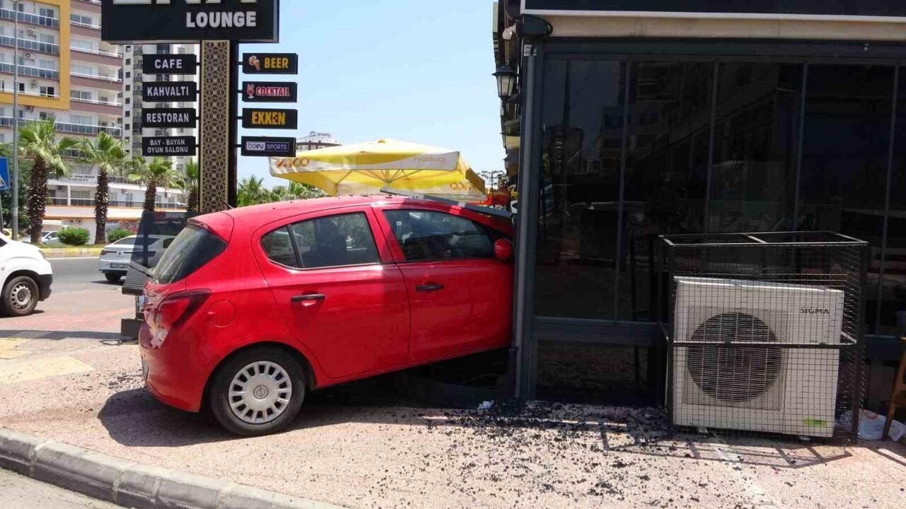 Mersin’de kontrolünü kaybeden kadın sürücü aracıyla kafeye daldı
