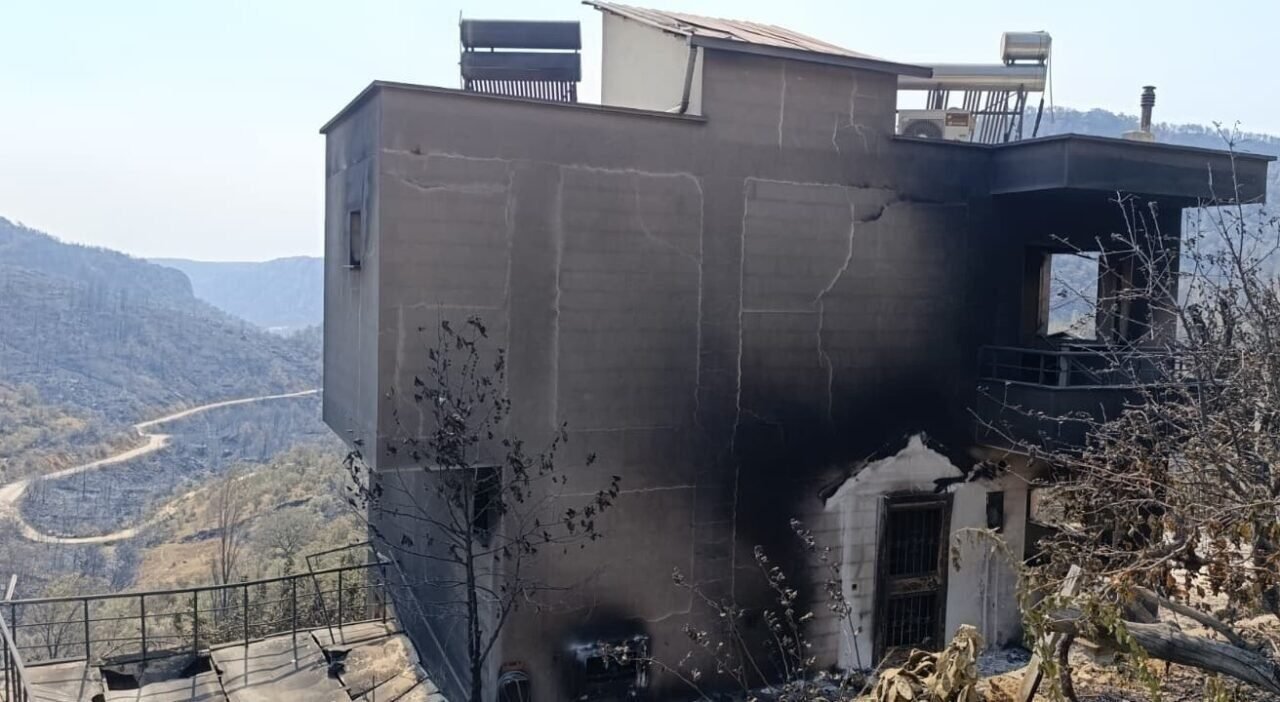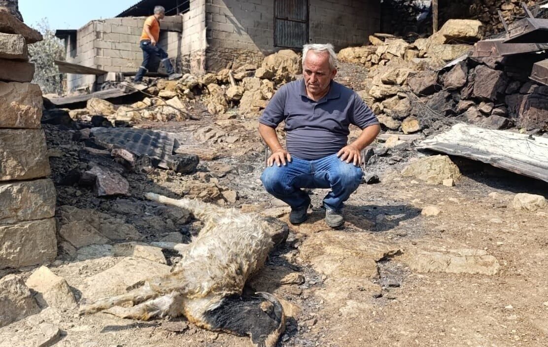 Kaynak makinesinden yangın çıktı diyen Türker, “Benim burada evim vardı, bahçem vardı. İki katlı evim yandı, 2 tane büyük tosun yandı, bir ineğim etkilendi, 80 tavuğum yandı, yaklaşık bin civarında badem ile Antep fıstığı ağaçlarım, köpeklerim, kedilerim yandı. Her şeyim yandı” dedi.
