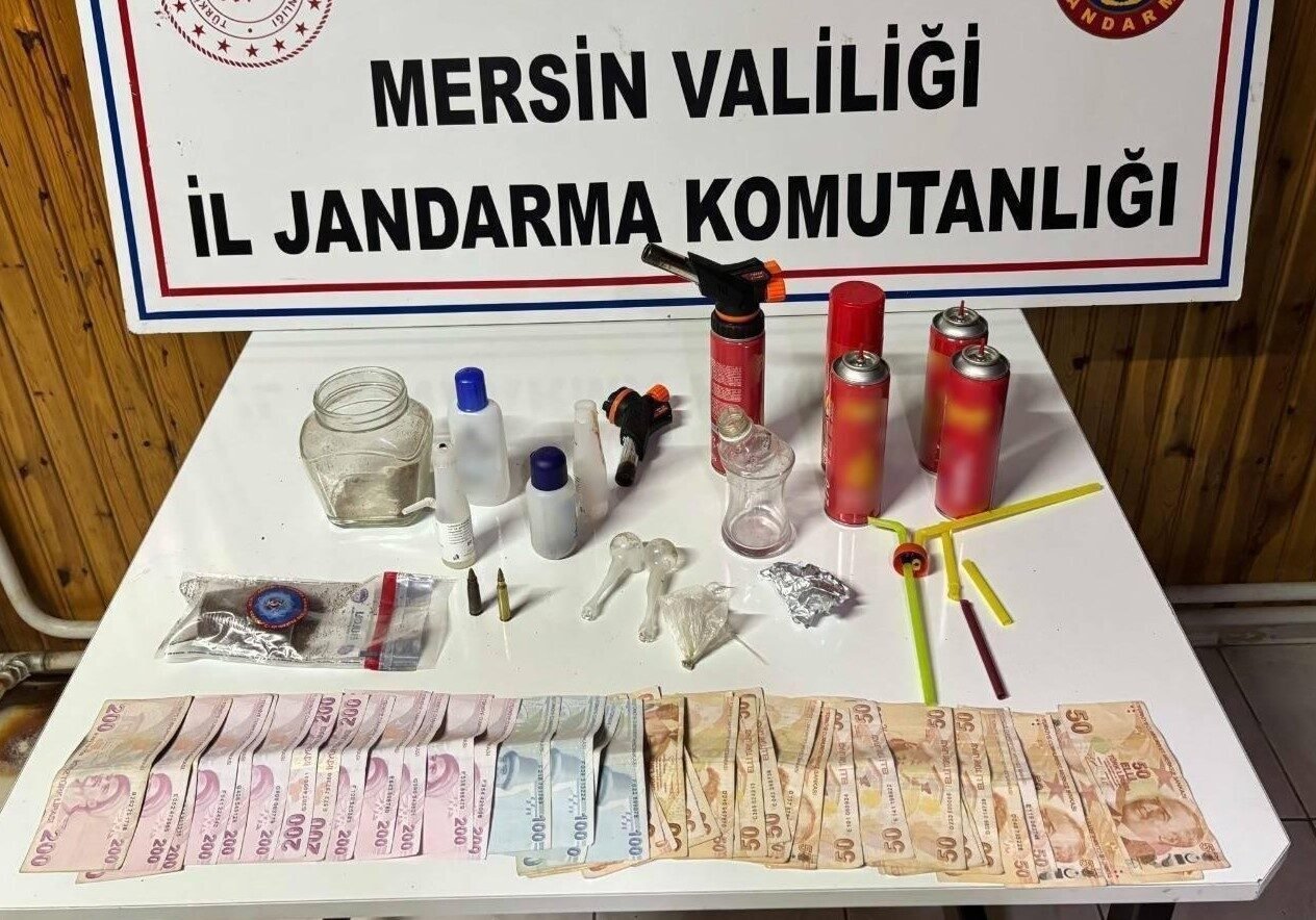MERSİN’DE JANDARMANIN UYUŞTURUCU SATICILARINA YÖNELİK DÜZENLEDİĞİ OPERASYONDA GÖZALTINA ALINAN 7 KİŞİDEN 5’İ TUTUKLANDI. OPERASYONDA, 448 GRAM METAMFETAMİN, 70 GRAM UÇ, 3 UYUŞTURUCU HAP, 1 TABANCA, 2 AV TÜFEĞİ, 264 TABANCA FİŞEĞİ, 1 BIÇAK, 14 UYUŞTURUCU MADDE KULLANMA APARATI İLE 5 BİN 600 TL PARA ELE GEÇİRİLDİ.