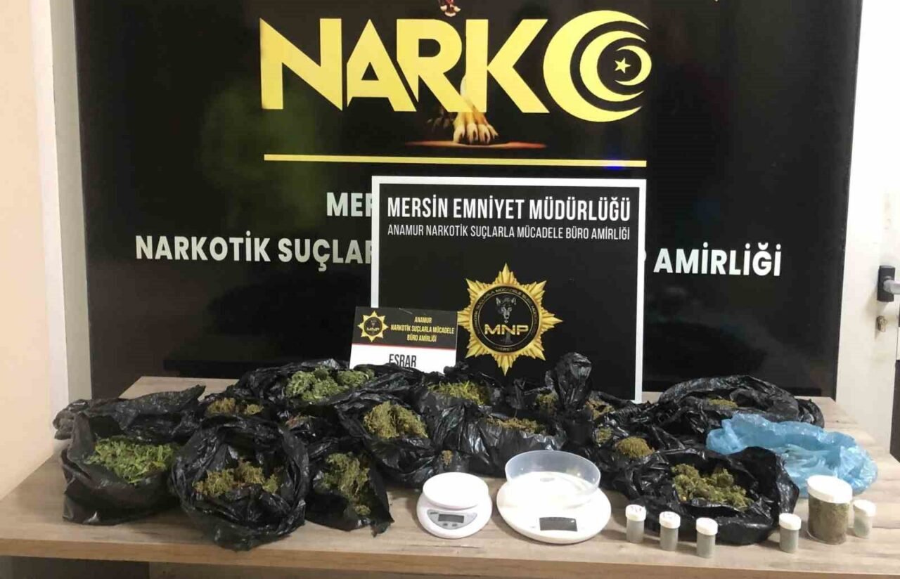 Alınan bilgiye göre, Anamur İlçe Emniyet Müdürlüğü Narkotik Suçlarla Mücadele Büro Amirliği ekiplerince savcılık koordinesinde uyuşturucu ticareti yaptığı belirlenen M.G.’nin adresine operasyon düzenlendi. Operasyonda M.G. ve yanındaki 2 şüpheli yakalandı. Şüphelilerin adres ve araçlarında yapılan aramada 2 hassas terazi, 21 parça halinde 2 kilo 221 gram esrar ve suçtan elde edilen bir miktar para ele geçirildi.