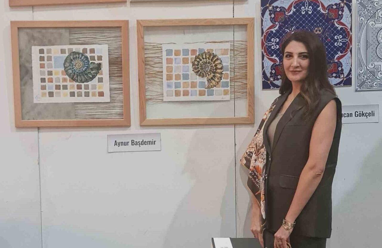 Mersin Olgunlaşma Enstitüsü’nde öğretmenlik yapan Başdemir, muz liflerini tuvaline taşıyarak kendi ürettiği kök boyalarla doğanın renk hafızasını yeniden canlandırıyor. Eserlerinde yer alan amonit fosilleri yaşamın sürekliliğini simgelerken, kare formlar ise Türk kültüründe dört elementi çağdaş bir anlatımla izleyiciye aktarıyor.