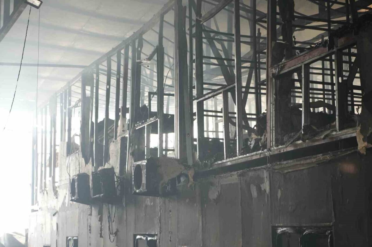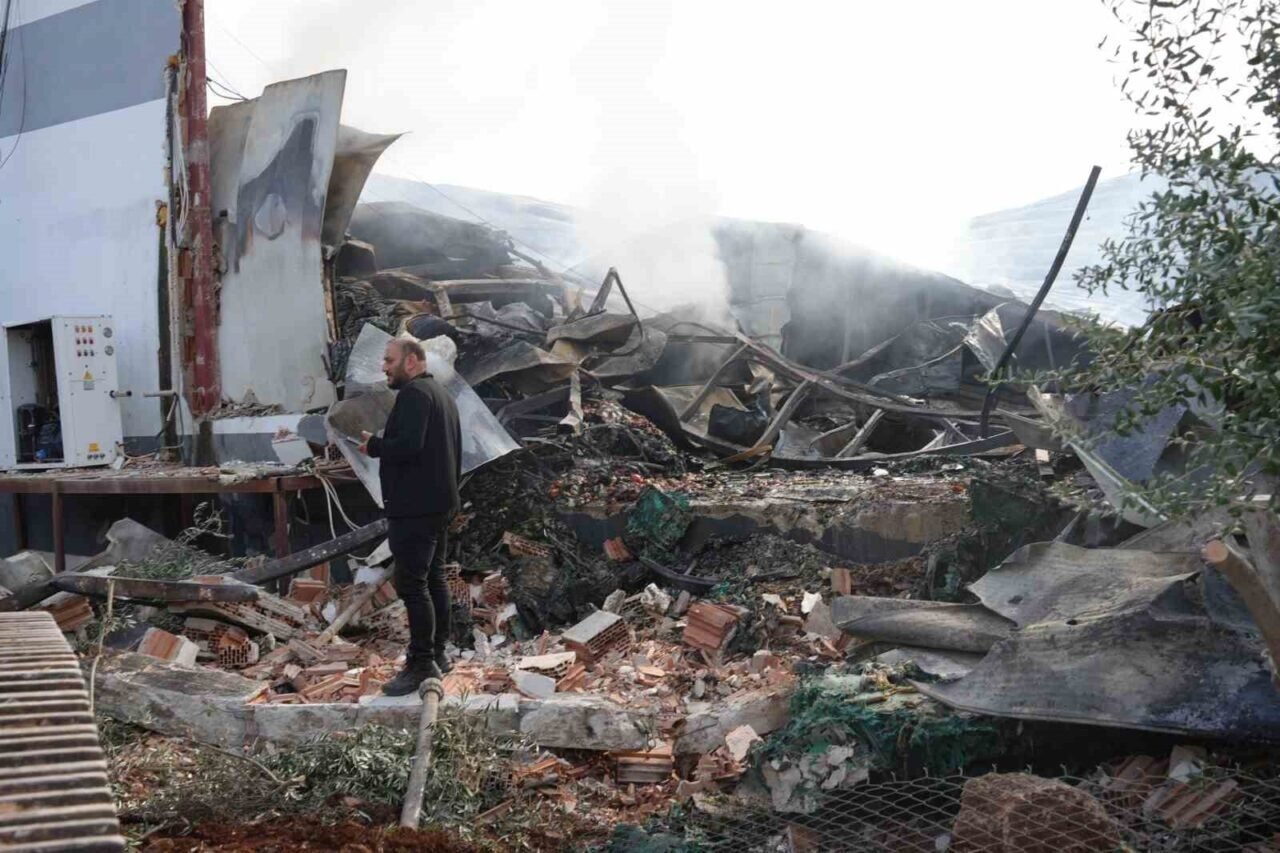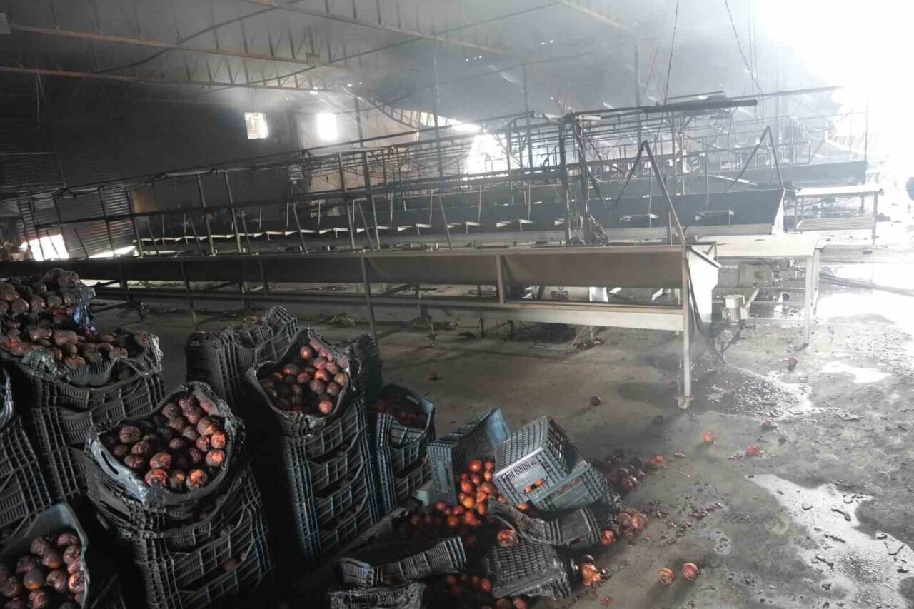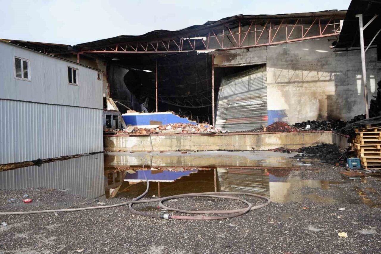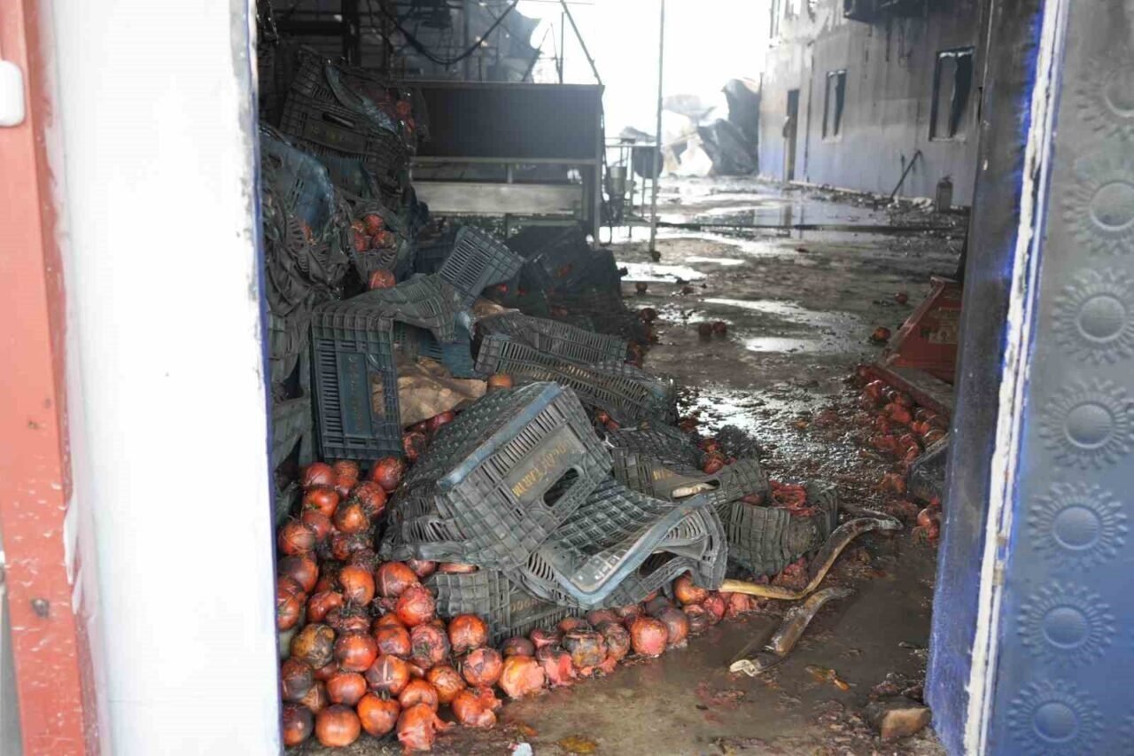 Sabah saatlerinde fabrikanın içinden alınan görüntülerde; yanan kasalar, sebzeler, iş makineleri ve çöken çatı bölümü dikkat çekti. Ekipler vinçlerle yanan ekipmanları kaldırdı.
