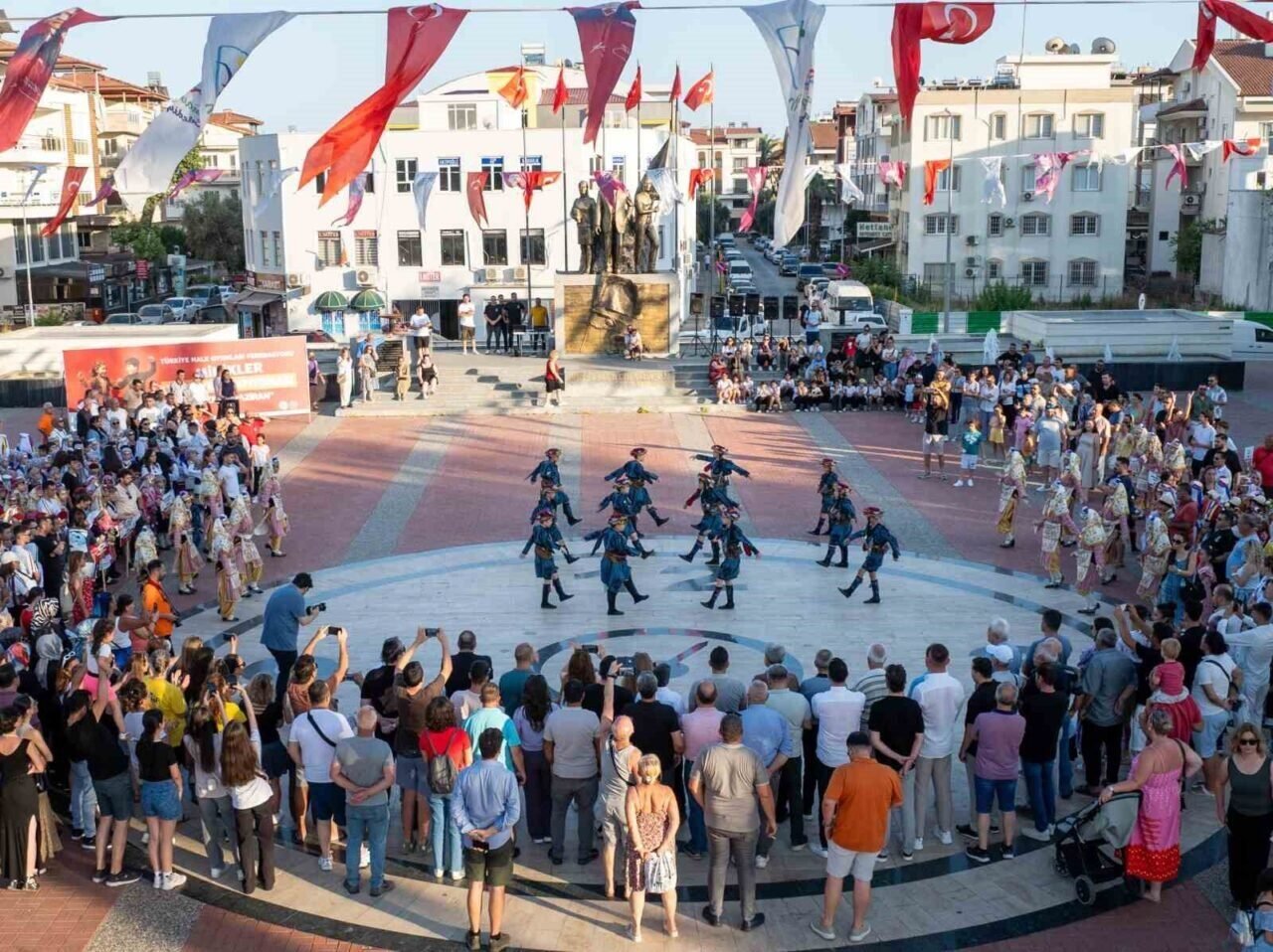 Manavgat Atatürk Kültür Merkezi’nde toplanan halk oyunları ekipleri, geleneksel kıyafetleriyle Cumhuriyet Meydanı’na kadar kortej yürüyüşü gerçekleştirdi. Yürüyüşe belediye başkan yardımcıları, meclis üyeleri, muhtarlar, sivil toplum kuruluşu temsilcileri, oda başkanları ve vatandaşlar da katıldı. Renkli görüntülere sahne olan etkinlikte Manavgat sokakları adeta kültür geçidine dönüştü.