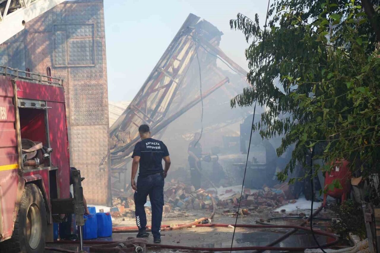 Antalya’da bir mobilya atölyesi çıkan yangına alev alev yandı. Yangına müdahale eden itfaiye ekipleri, arka duvarın çökmesiyle büyük tehlike atlattı. Vatandaşları olay yerinden uzaklaştıran ekipler, çökmenin yaşandığı sırada bölgeden kaçarak kurtuldu. Yangında yaralanan olmazken, atölye kullanılamaz hale geldi.