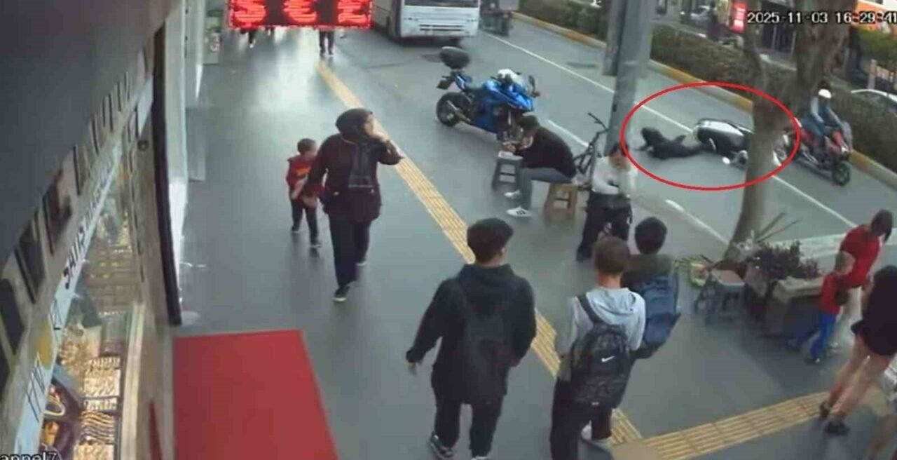Antalya’nın Manavgat ilçesinde yaya geçidinde duran motosiklete çarpmamak için frene basan sürücü, direksiyon hakimiyetini kaybederek devrildi. Çenesinden yaralanan sürücü hastaneye kaldırıldı. Kaza anı çevredeki bir iş yerinin güvenlik kamerasına saniye saniyesine yansıdı. Kaza, Manavgat ilçesi Aşağı Pazarcı Mahallesi İbrahim Sözen Caddesi’nde meydana geldi. Edinilen bilgiye göre, Bünyamin C. idaresindeki 63 AGH 661 plakalı motosiklet, yaya […]