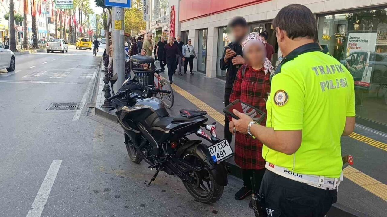 Antalya’nın Manavgat ilçesinde seyir halindeki motosikletin plakasının bandana ile kapalı olduğunu gören trafik ekibi, durdurduğu motosikletin sürücüsünün ehliyetinin olmadığı belirlendi. Sürücüye çeşitli maddelerden toplam 43 bin 149 TL ceza uygulandı.