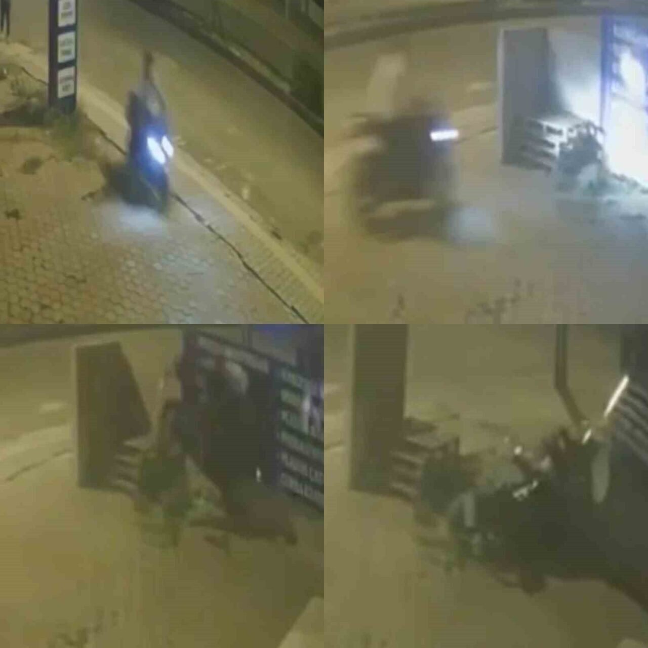 Mersin’in Tarsus ilçesinde motosiklet sürücüsü kaldırıma çıkarak levhaya çarpıp yaralandı.O anlar güvenlik kamerasına yansıdı.
