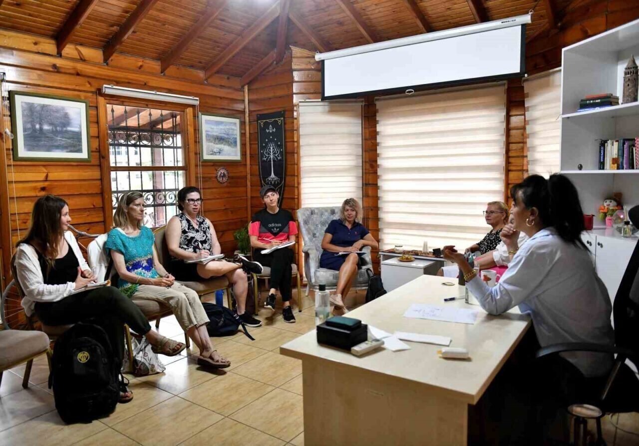 Muratpaşa Belediyesi Kadın Aile Müdürlüğü tarafından gerçekleştirilen ‘Türkçe Konuşma Kulübü’nde yabancı uyruklu ilçe sakinlerine Türkçe konuşma pratiği yapılırken katılımcılar aynı zamanda birbirleriyle sosyalleşme ve kültürel etkileşimde bulunma imkanı da sağlıyor.