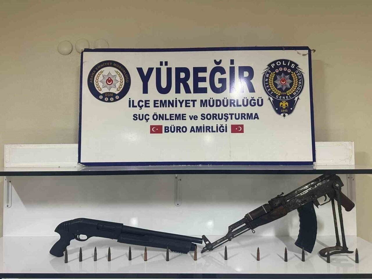 Edinilen bilgiye göre, merkez Yüreğir İlçe Emniyet Müdürlüğü Suç Önleme ve Soruşturma Büro Amirliği ekipleri, şüpheli A.K.’nin evinde ruhsatsız silahlar bulundurduğu bilgisine ulaştı. Bunun üzerine ekipler, şahsın Çamlıbel Mahallesi’ndeki evine operasyon yaptı. Yapılan operasyonda A.K. gözaltına alındı. Yapılan arama çalışmaların mutfak dolabının içerisine zulalanmış AK-47, pompalı tüfek ve 14 adet mermi ele geçirildi.