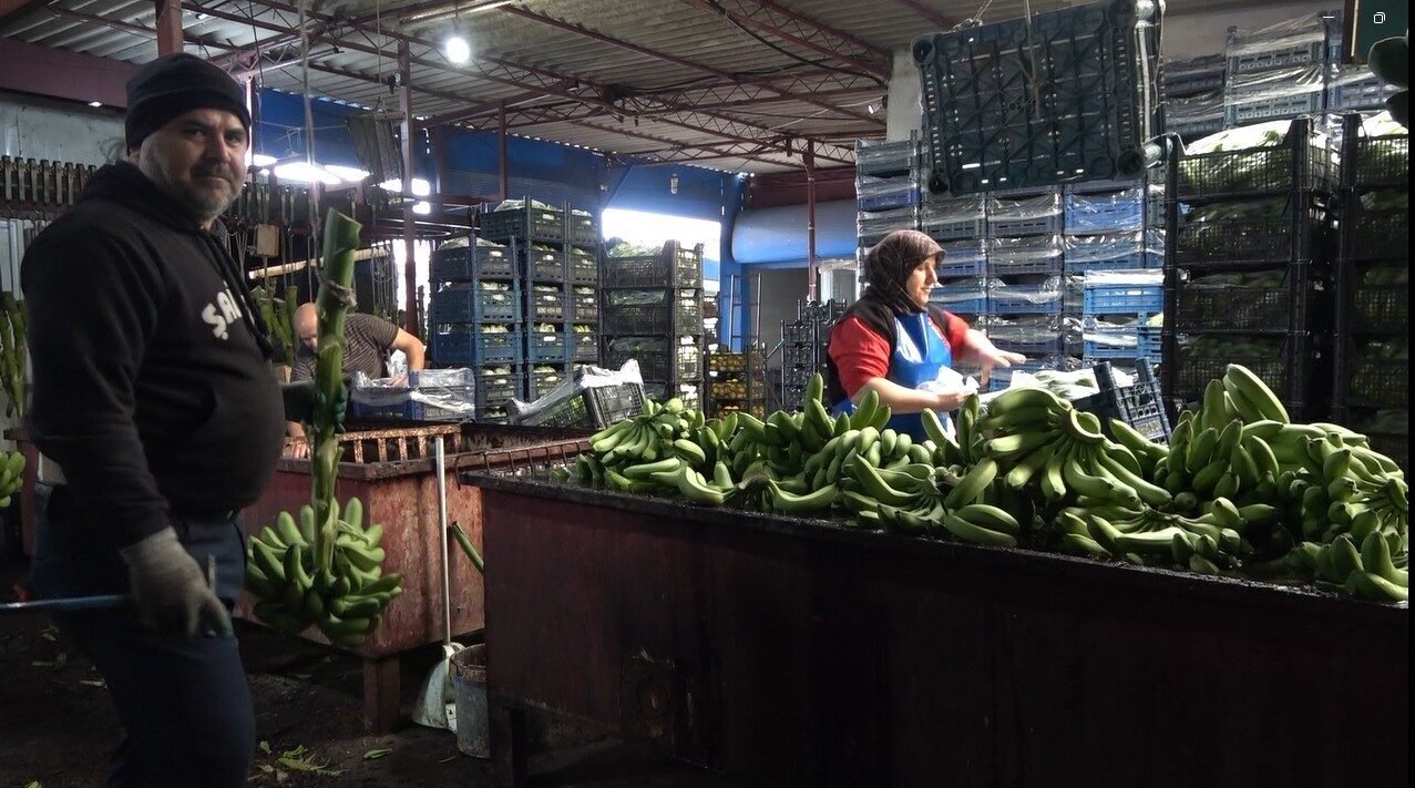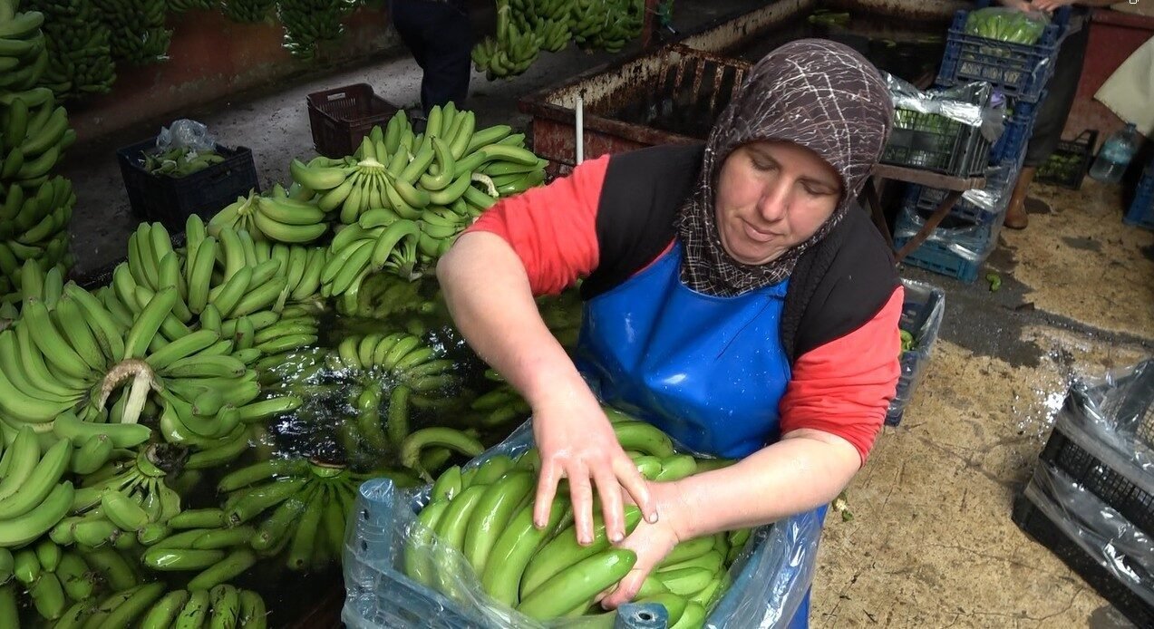 Muz üretimi ve ticaretinin ana merkezi haline gelen Alanya’da, seralarda yetişen muzlar sabahın ilk ışıkları ile beraber seralardan kesilip satılmak üzere toptancı haline gidiyor. Muzlar toptancı haline geldikten sonra önce temizleniyor, ardından ise sarartma işlemi yapılmak üzere depolara kaldırılıyor. Depolarda hummalı çalışan işçiler ise işleri severek yapmanın ve üretime katkı sağlamanın kendilerini oldukça mutlu ettiğini ifade ediyor.