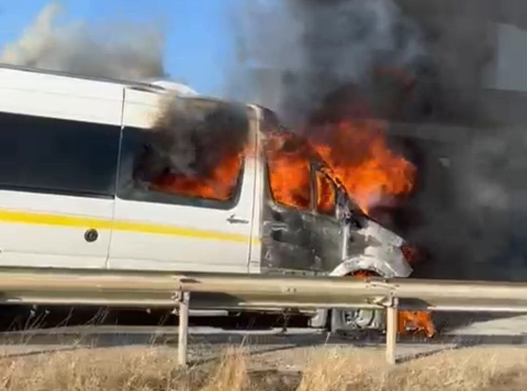 Adana’da öğrenci servis aracının çarptığı motosiklet sürücüsü çıkan yangında feci şekilde hayatını kaybetti.