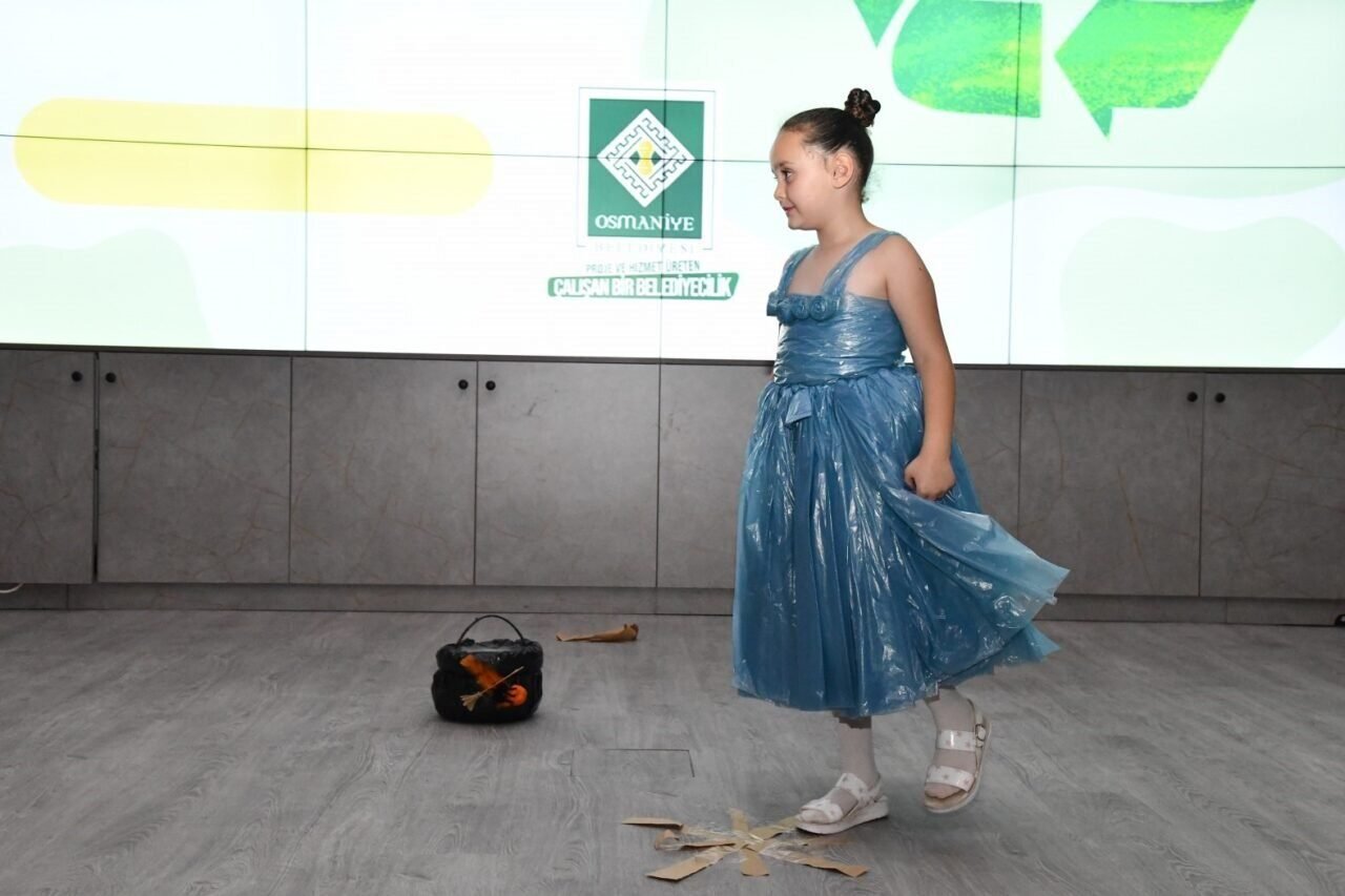 Osmaniye Belediyesi’nce “5 Haziran Dünya Çevre Günü” etkinlikleri kapsamında düzenlenen defilede minik öğrencilerin atık malzemelerden tasarladığı elbiseler göz kamaştırdı. Kavanoz kapağı, çöp poşeti ve karton kullanılarak tasarlanan elbiselerle çevre duyarlılığına dikkat çekmek isteyen öğrenciler katılımcılardan da büyük alkış topladı.