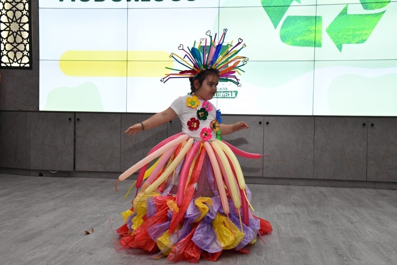İklim Değişikliği ve Sıfır Atık Müdürlüğü organizasyonuyla Nikâh Salonu’nda düzenlenen program, saygı duruşu ve İstiklal Marşı’nın okunmasıyla başladı. Şehit Veli Demiryürek Bilim ve Sanat Merkezi öğretmenleri Barış Özer ve Metehan Artış tarafından bestelenen ‘Sıfır Atık ve Su’ adlı iki eser öğrencilerce seslendirildi. Ardından 23 Nisan Anaokulu öğrencileri ‘Sıfır Atık’ rap şarkısını seslendirmek için sahne aldı. Mini konserlerden sonra 23 Nisan Anaokulu ve Seher Sare Özden Anaokulu öğrencileri atık malzemelerden tasarlanan elbiseleri izleyicilerin beğenisine sundu. Defilede kavanoz kapağı, çöp poşeti ve kartonların kullanılarak tasarımları ile göz kamaştıran elbiseleri tek tek sahneleyen öğrenciler izleyicilerden de büyük alkış topladı. Belediye Başkanı İbrahim Çenet’in beğenerek izlediği etkinlikte sahneye çıkan öğrencilerin mutlulukları ise gözlerinden okundu.