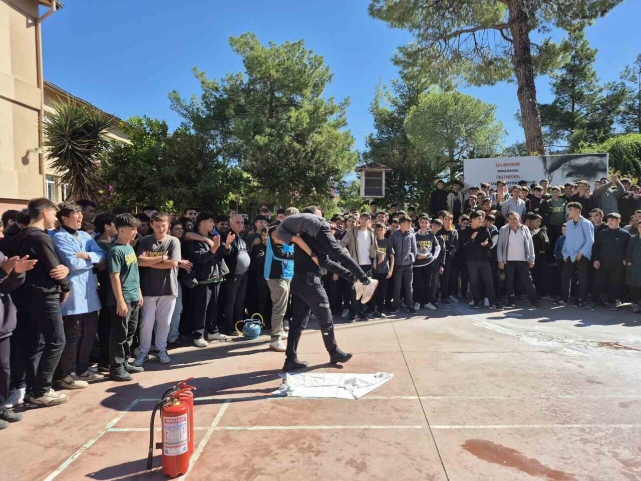 Tatbikatın hem öğretici hem de heyecan verici geçtiğini belirten öğrenciler, “Deprem anında nasıl davranmamız gerektiğini ve yangında yapılan yanlışları bu tatbikatla daha iyi anladık” ifadelerini kullandı.