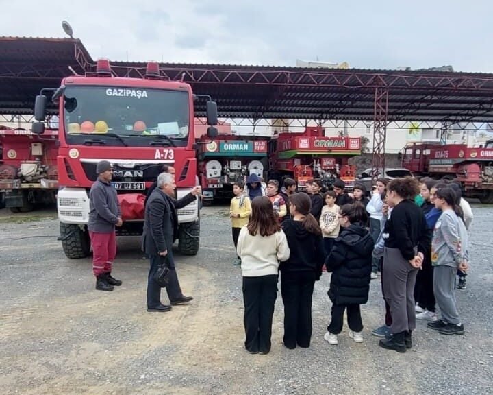 Ekipler tarafından, Gazipaşa Orman İşletme Müdürlüğü’nü ziyaret eden öğrencilere yönelik özel bir eğitim programı düzenlendi. Yangın söndürme araçlarını yakından tanıyan öğrenciler, orman yangınlarının nasıl başladığı, nasıl söndürüldüğü ve yangın anında nasıl davranmaları gerektiği konusunda bilgilendirildi. Arazözleri inceleme fırsatı bulan öğrenciler, yangın söndürme ekiplerinin nasıl çalıştığını da uygulamalı olarak öğrenme imkânı buldu.