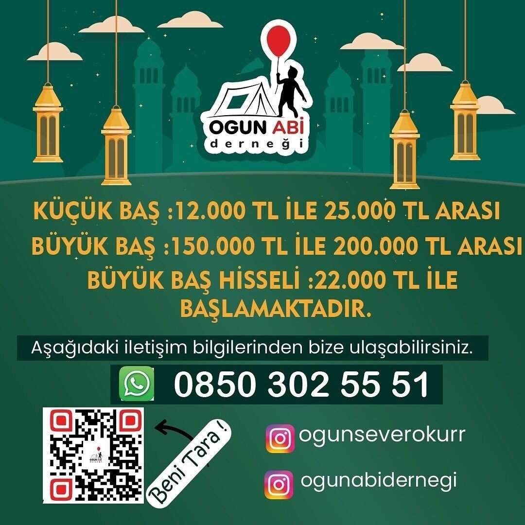 Dernek Başkanı Ogün Sever Okur, Kurban Bayramı’nda küçükbaş koyun için 12 ile 25 bin lira fiyat belirlerken, büyükbaş hisseli kesimin ise 22 bin liradan başlayacağını duyurdu. Okur, et dağıtımının Kurban Bayramı’yla birlikte yaklaşık 1 hafta süreceğini söyledi.