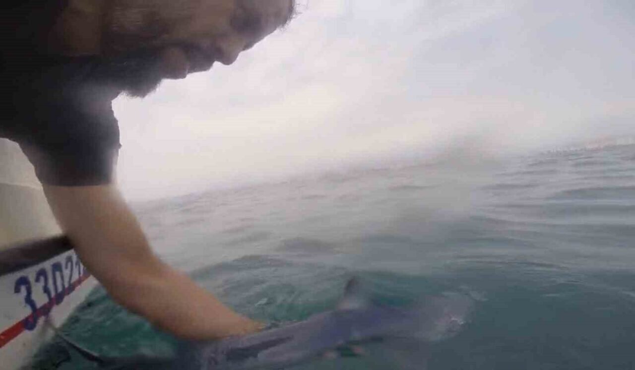 Mersin’de demir işiyle uğraşan 41 yaşındaki Çınar Küçük, küçüklüğünden beri hobi olarak da balık avlamaya başladı. İyi derecede dalgıç olan Küçük, zaman zaman teknesiyle avlanmaya çıkarken, kayda aldığı görüntüleri de sosyal medya hesabından paylaşmaya başladı. Son olarak Mezitli ilçesi Viranşehir açıklarında oltasına yaklaşık 120 santimetre boyunda yavru mako cinsi köpek balığı takılan Küçük, teknesine çıkardığı balığı oltasından kurtararak denize geri bırakmak istedi. Yüzgecinde başka bir balıkçının olta iğnesinin takılı olduğunu gören Küçük, bunu da çıkararak, köpek balığını kendisine gelmesi için bir süre eliyle yüzdürerek, denize bıraktı. Kameraya aldığı bu anları da sosyal medya hesabından paylaşan Küçük’e yorumlarda, bazıları köpek balığını geri bırakarak iyi yaptığını yazarken, bazıları da insanlara zarar vereceği endişesiyle tepki gösterdi.