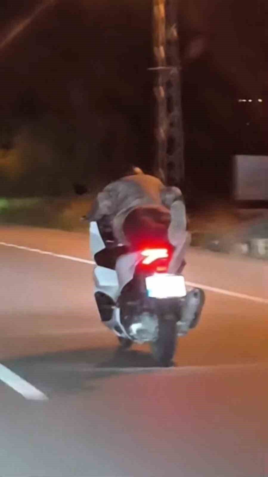 Hatay’ın Arsuz ilçesinde motosikletin üzerine yatarak trafikte seyreden sürücüye 40 bin 514 TL idari para cezası uygulandı.