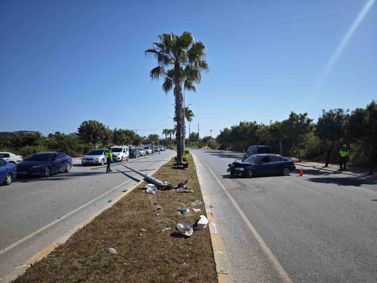 Antalya’nın Manavgat ilçesinde direksiyon hakimiyetini kaybeden araç sürücüsü önce refüje, ardından aydınlatma direğine çarparak durabildi.