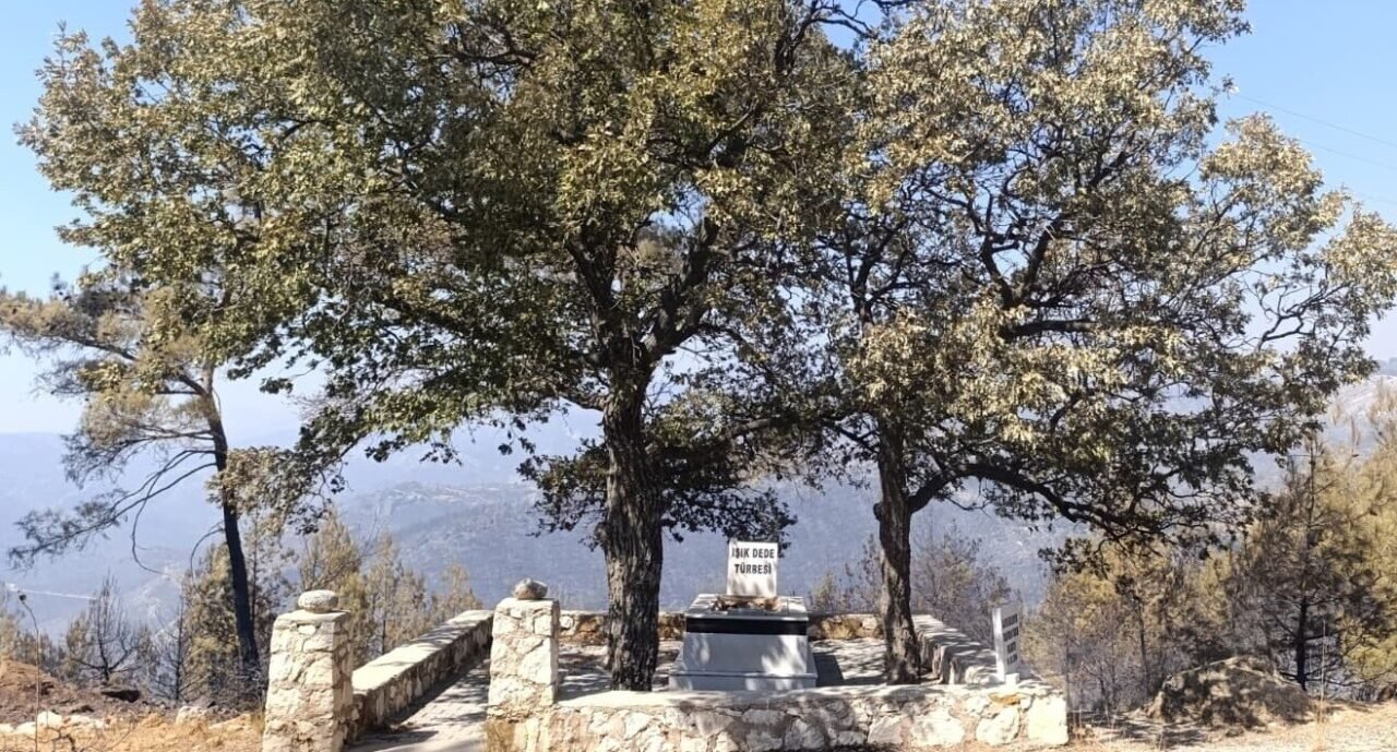 Mersin’in Silifke ilçesi sınırlarında önceki gün çıkan ve ormana sıçrayan yangında bir mezarlık da yandı, alevler Işık Dede Türbesi önünde durdu. Yangının hayırseverliği ile bilinen Işık Dede’nin kabrine ve türbedeki ağaçlara zarar vermemesi dikkat çekti.