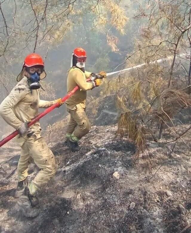 Bölgede ekiplerin soğutma çalışması sürerken yaklaşık 2 hektarlık alanın zarar gördüğü bildirildi.