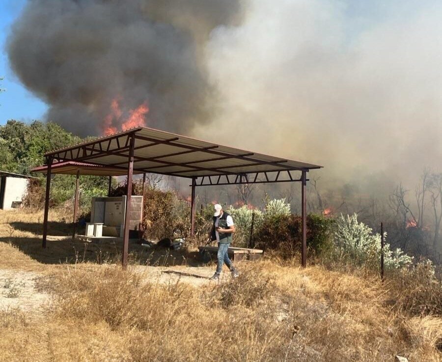 Sumbas ilçesine bağlı Akdam köyü Evciller Mahallesi’nde henüz bilinmeyen bir nedenle çıkan anız yangını, rüzgarın da etkisiyle kısa sürede çevredeki zeytinliğe ve makilik alana sıçradı. Dumanları fark eden vatandaşların ihbarı üzerine bölgeye çok sayıda Orman İşletme Müdürlüğü ekibi, itfaiye ve jandarma sevk edildi. Yangına karadan ve havadan müdahale ediliyor. Alevlerin yayılmasını önlemek için iş makinesi ve traktörlerle ekipler yoğun çaba sarf ediyor.